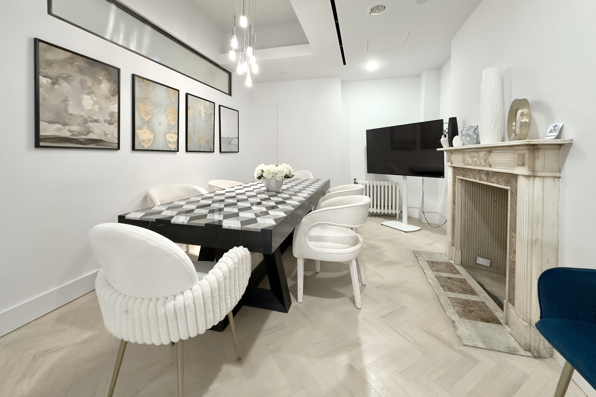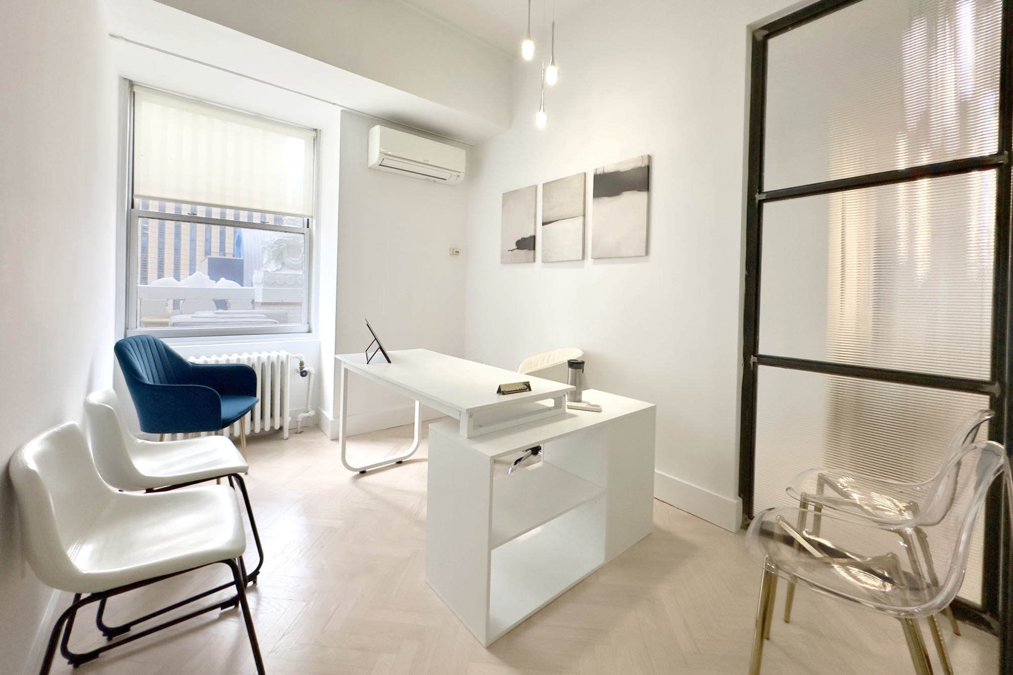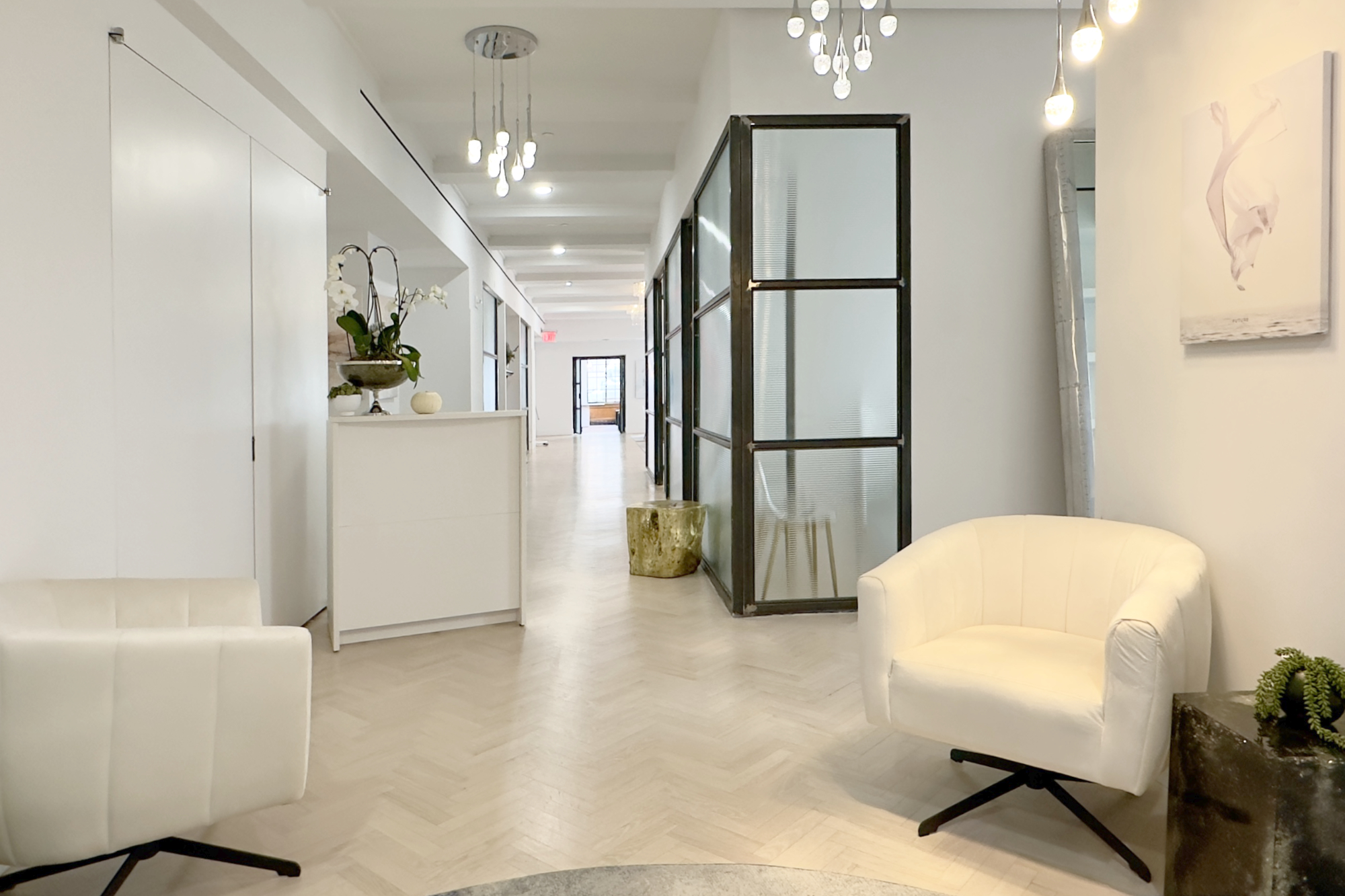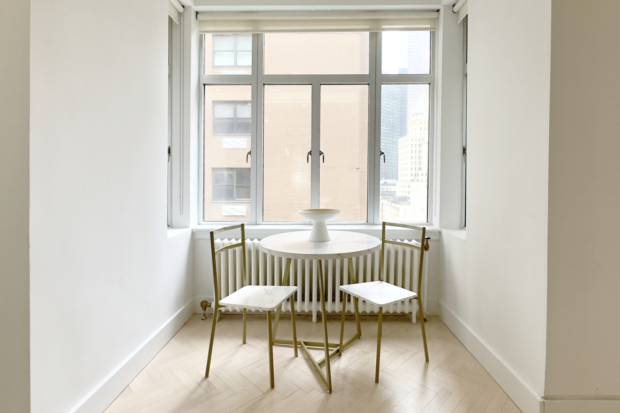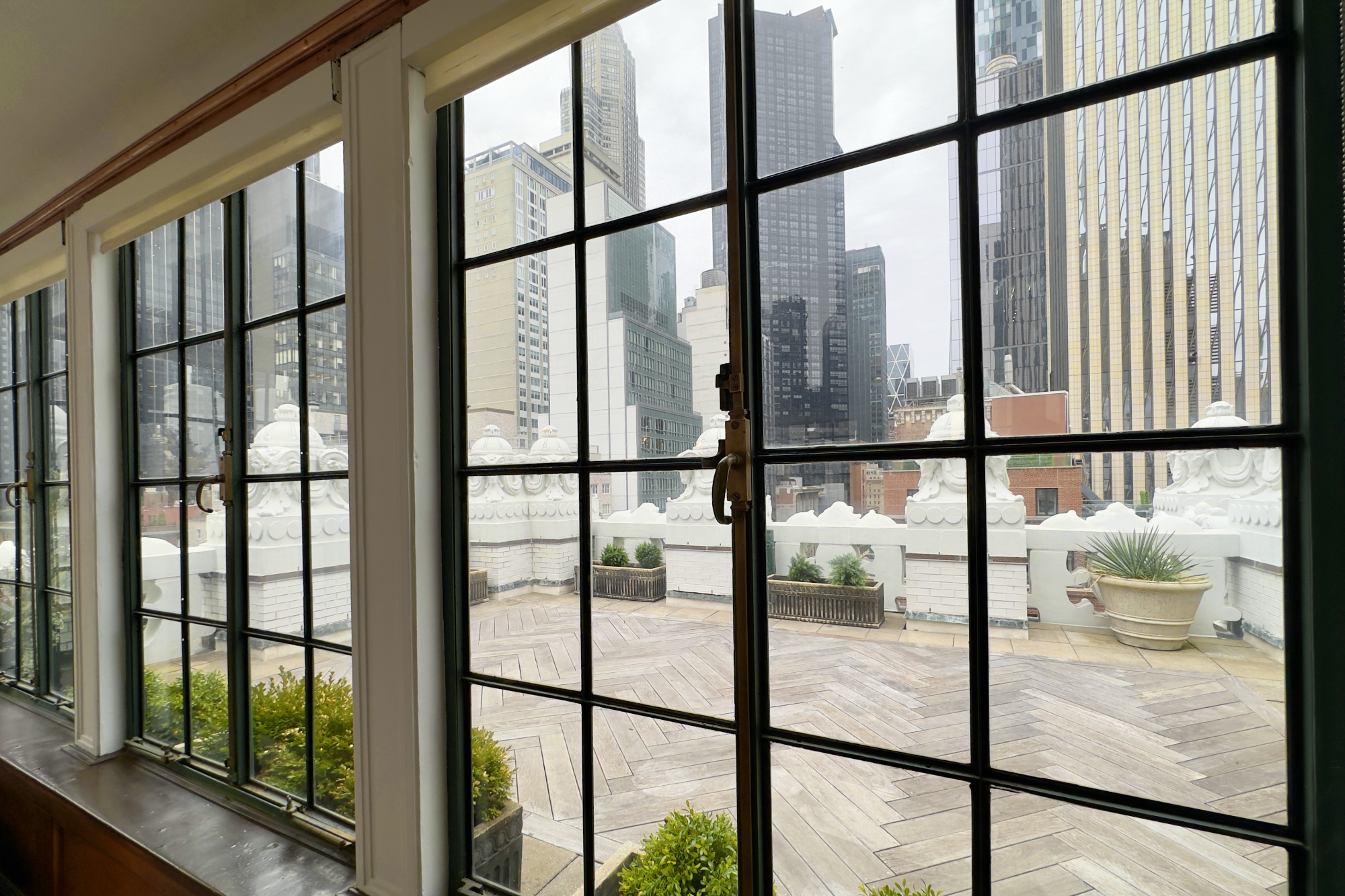 This shared office suite is located on Fifth Avenue in Midtown within a wellness-focused company and offers a range of sublease options, including two private offices, open workspace, and a large solarium suitable for showroom or office use. The suite features access to a large wrap-around terrace, furnished during the non-winter months, providing a unique outdoor amenity. Conveniently located near major subway lines and Midtown amenities.