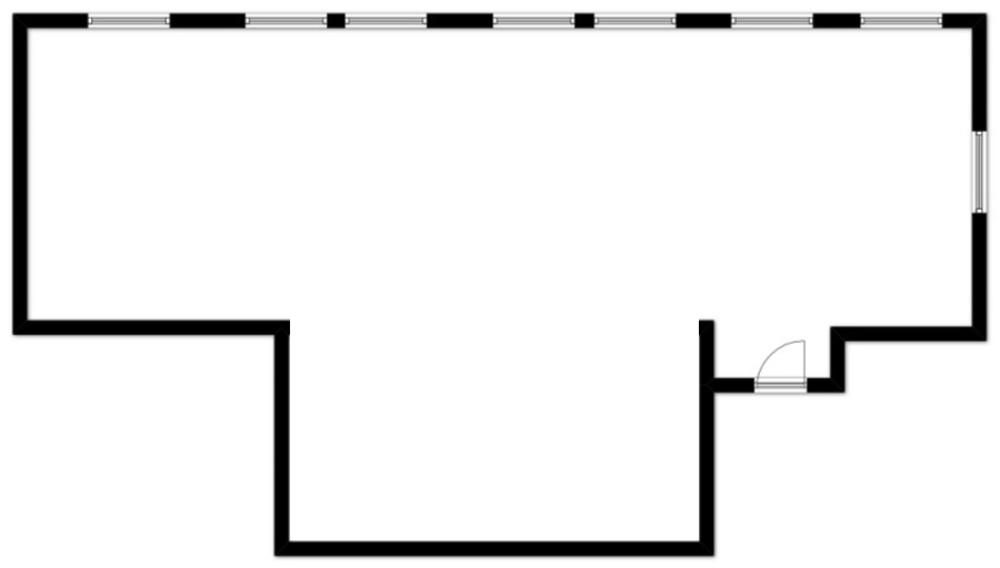 Open showroom space with wood floors, high ceilings, and lots of natural light