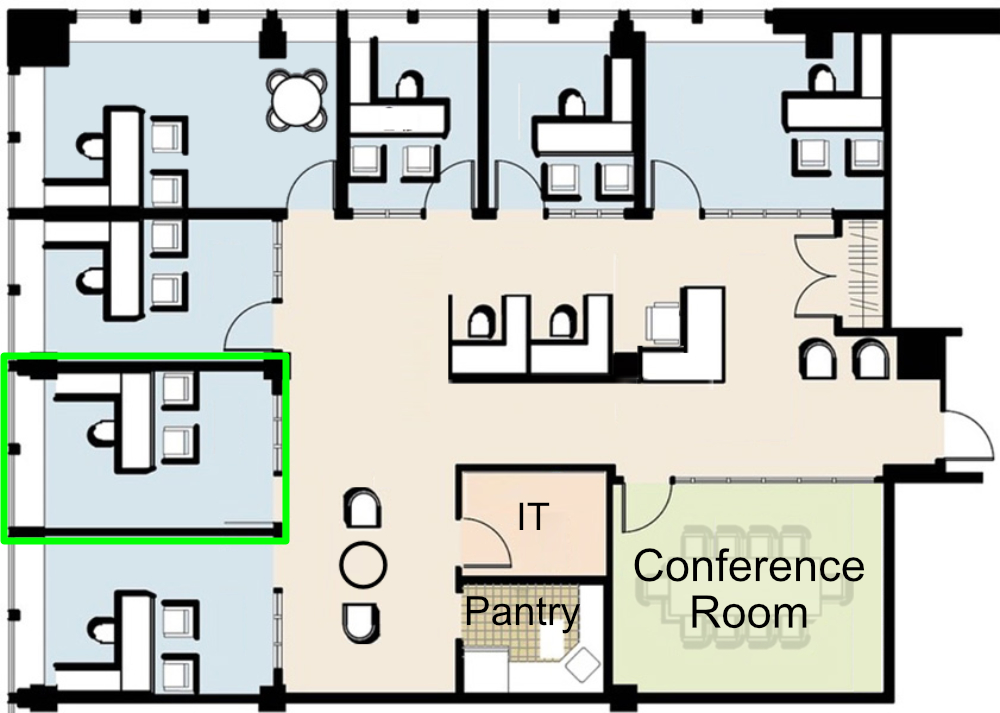 Windowed office for sublease (measures approx. 14' x 9'8")