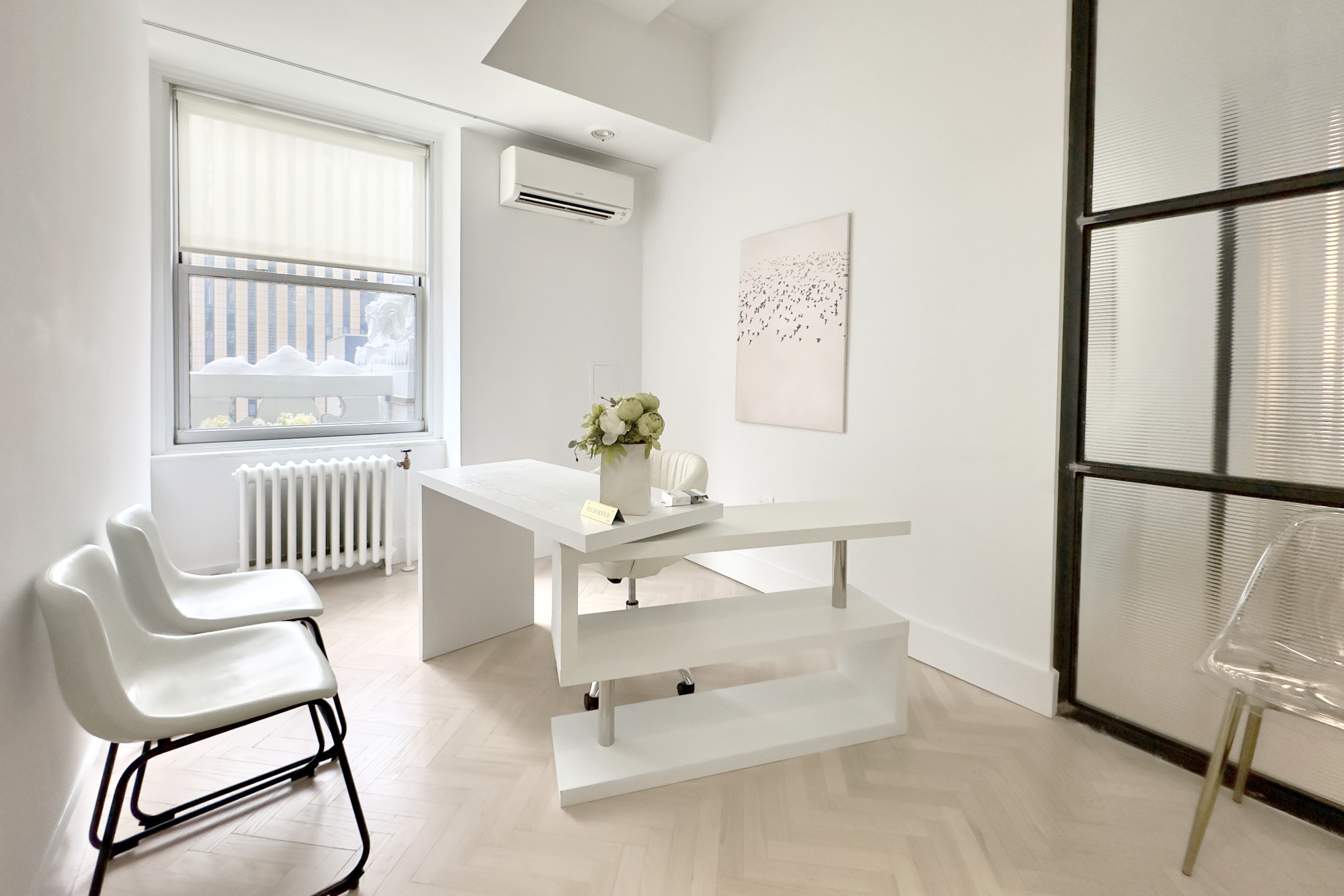 The building is a classic New York high-rise with. 24/7 doorman service and elevator access directly to the space. The interior has been fully modernized and features abundant natural light throughout. Conveniently located near major subway lines and midtown amenities.